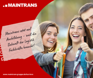 Bei Maintrans wissen wir: Unsere Zukunft hängt von gut ausgebildeten Fachkräften ab. In der Logistikbranche sind kompetente und engagierte Mitarbeiter das Rückgrat eines erfolgreichen Unternehmens. Deshalb setzen wir auf eigene Ausbildung – um unsere gesellschaftliche Verantwortung zu übernehmen und gleichzeitig für Stabilität und Innovation in unserem Unternehmen zu sorgen.